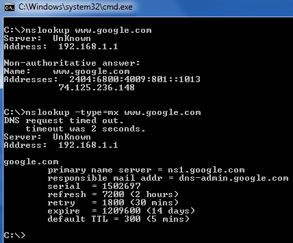 One powerful tool you should be familiar with is NSlookup (see Figure 2.2). This tool queries DNS servers for record information. It's included in Unix, Linux, and Windows operating systems. Hacking tools such as Sam Spade also include NSlookup tools. Building on the information gathered from Whois, you can use NSlookup to find additional IP addresses for servers and other hosts. Using the authoritative name server information from Whois ( AUTH1.NS.NYI.NET ), you can discover the IP address of the mail server.Syntax